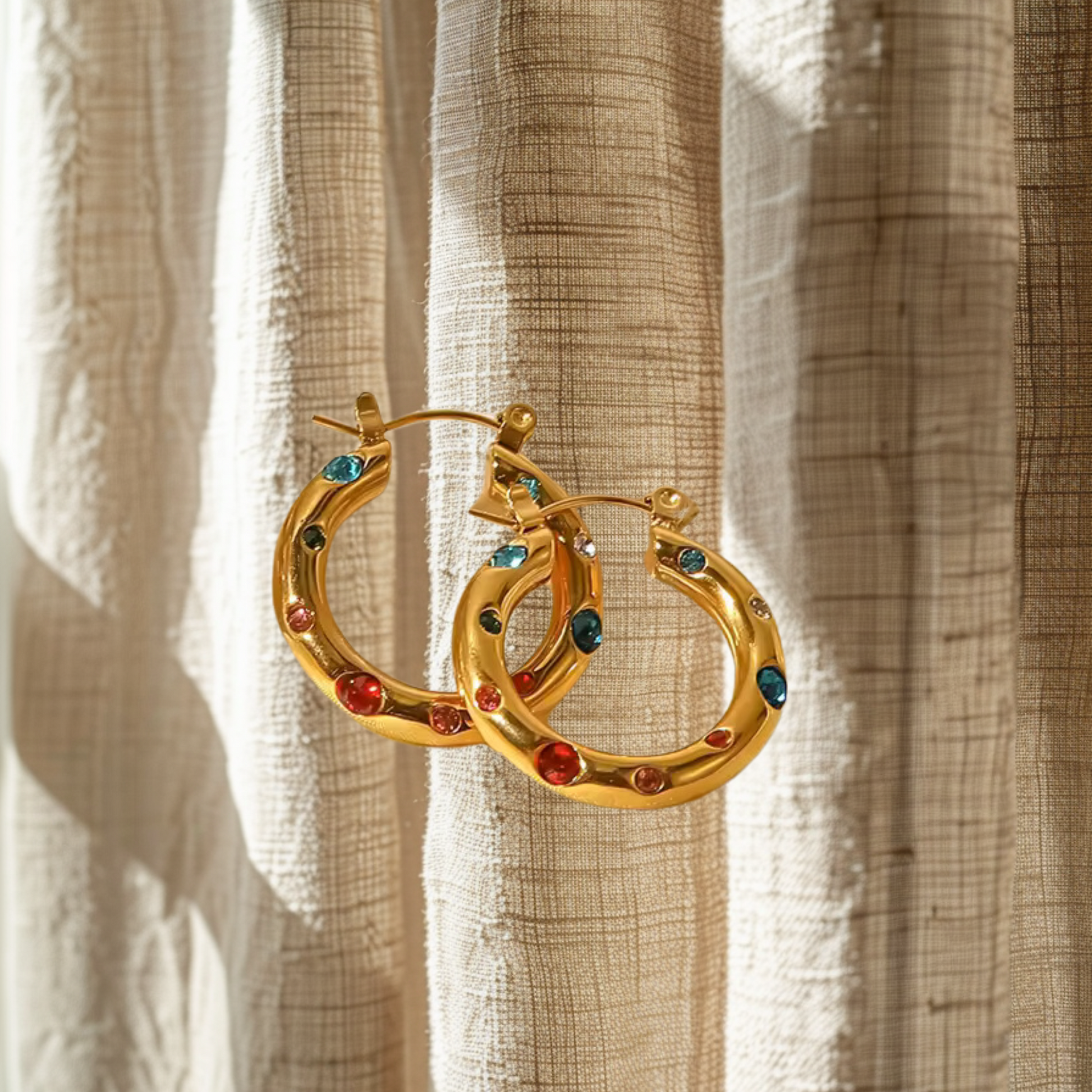Amalfi Allure 18k Gold Multi-Coloured Gem Hoop Earrings