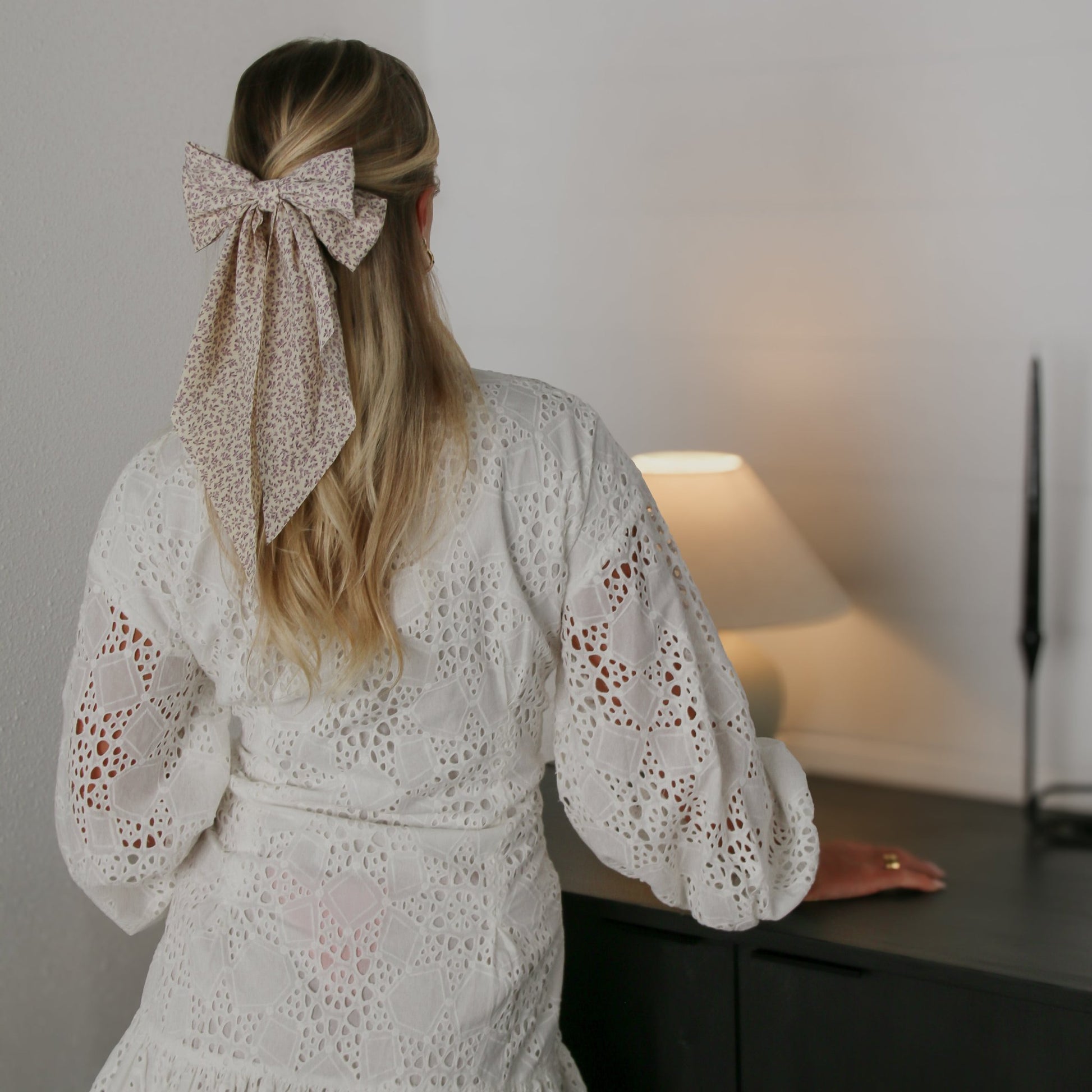 Our bows have a French barrette clip that is comfortable and effortless to wear and remove. 19cm wide & 30 cm in length from clip